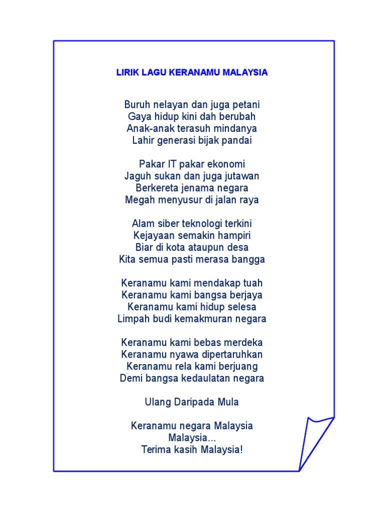 Tanggal 31 Saya Anak Malaysia Lirik Lagu Patriotik