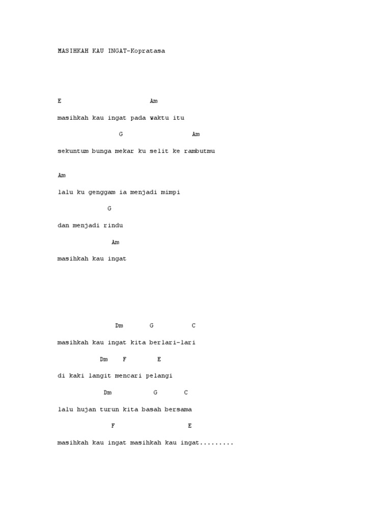 Kord Gitar Akustiker Kopratasa Masihkah Kau Ingat