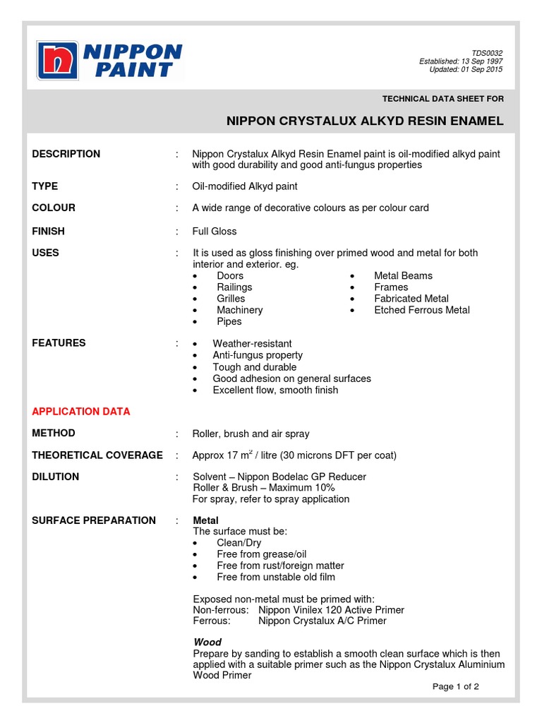 Nippon Crystalux Alkyd Resin Enamel Tds 1 Paint Industrial Processes