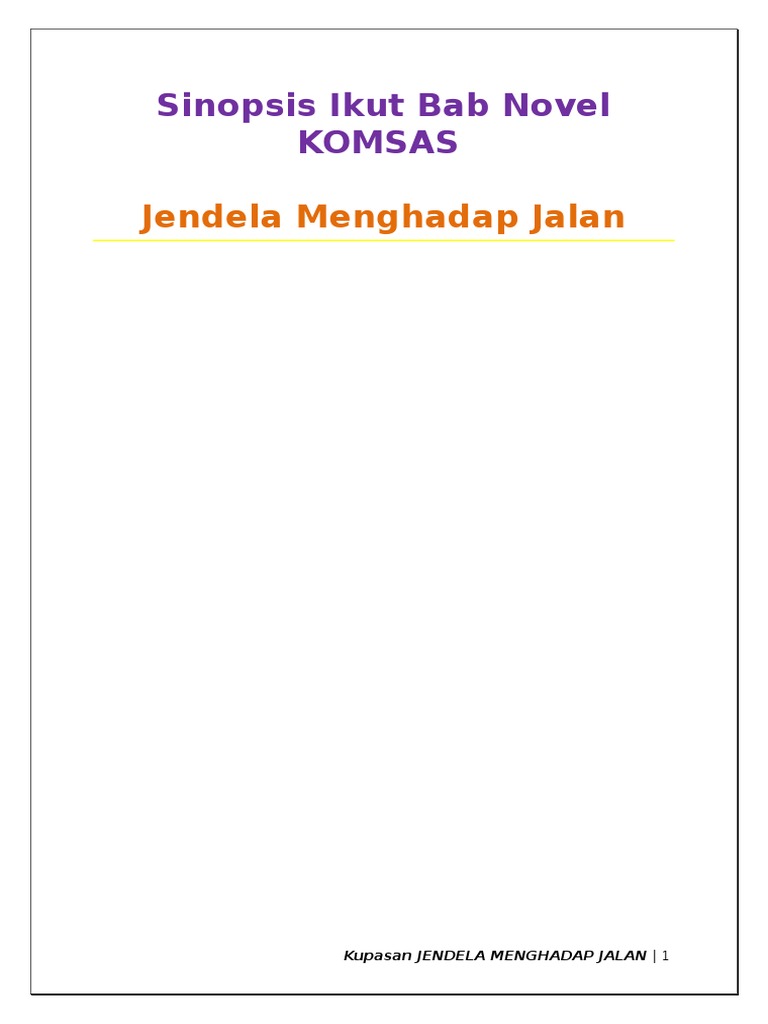 Sinopsis Ikut Bab Novel Komsas Jendela Menghadap Jalan Tingkatan 4